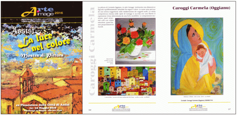 Caroggi partecipa alla mostra con le opere: I colori di Bosa (acrilico su tela 80 x 40 cm, 2015); Madonna col Bimbo (olio su tela 40 x 60 cm, 2015). Viene pubblicata sul catalogo anche la terza opera (Vaso di Rose, acrilico su tela 50 x 60 cm, 2016) delle quattro proposte in fase di selezione.