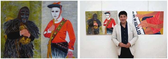 Caroggi partecipa alla mostra con 2 opere: Mamuthone & Issohadore – Maschere del Carnevale barbaricino (acrilico su tela gallery 80 x 60 cm, 2015) e La pianista (acrilico su tela 80 x 60 cm, 2016).