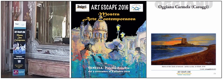 La mostra “Art Escape 2016” verrà inaugurata alle ore 17:30 di sabato 3 Settembre nella nota location veneziana di Palazzo Zenobio (v. Invito al Vernissage). La manifestazione sarà aperta al pubblico fino al 3 Ottobre in orario di museo.
