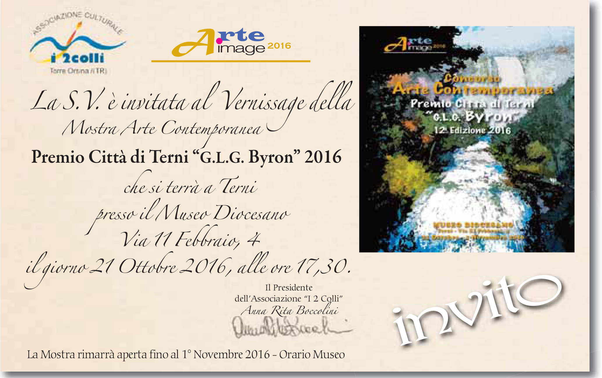 La 12ª edizione della mostra “Premio Città di Terni 2016” verrà inaugurata alle ore 16:00 di sabato 21 Ottobre presso il Museo Capitolare Diocesano (v. Invito al Vernissage), con la partecipazione dei critici d’arte Elisa Polidori, Francesco Santaniello e Claudia Sensi. La manifestazione resterà aperta al pubblico fino al 1° Novembre in orario di museo.