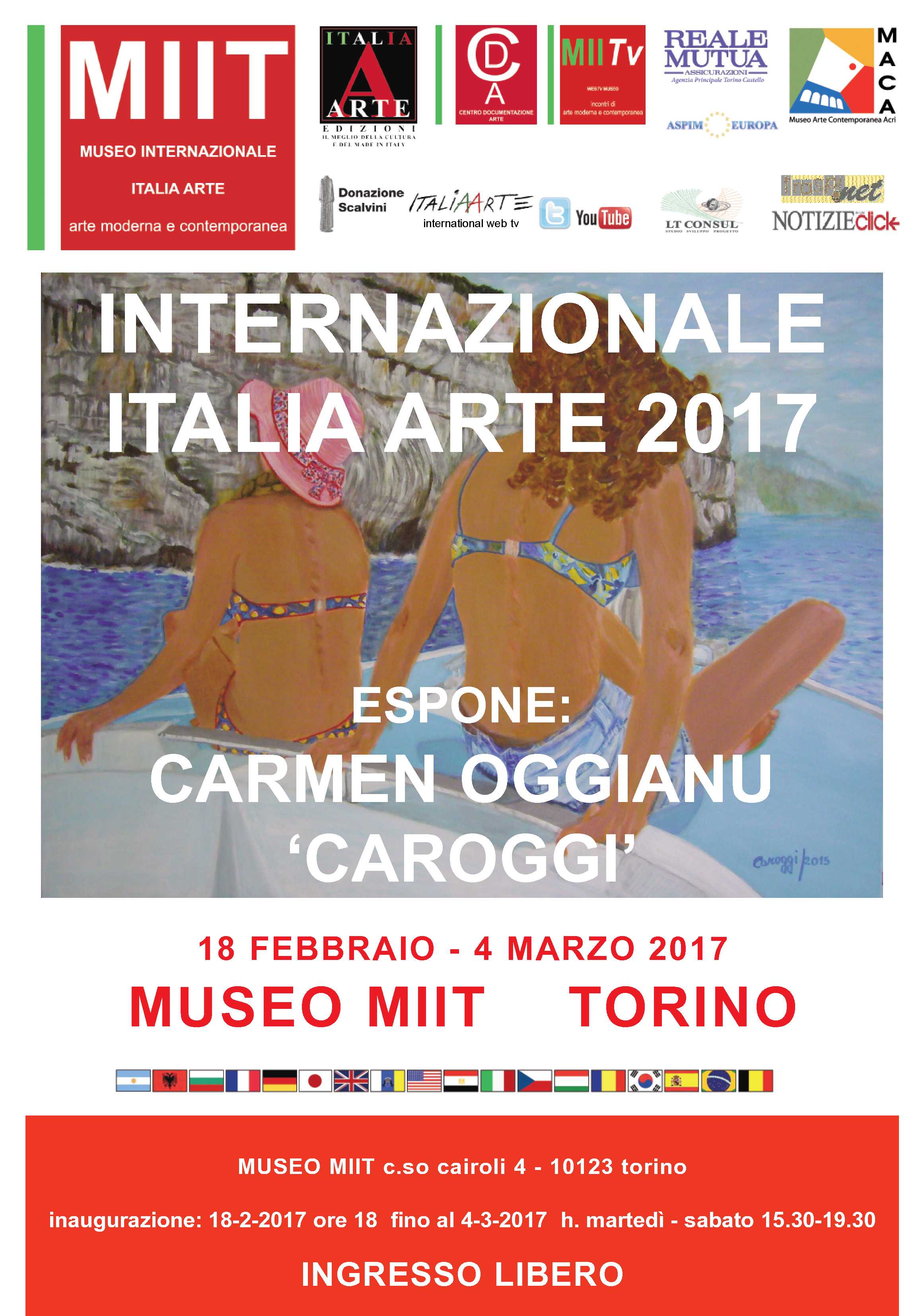 La prima sessione della mostra “Internazionale Italia Arte 2017” verrà inaugurata sabato 18 Febbraio alle ore 18:00 al museo MIIT di Torino e resterà aperta al pubblico dal 22 Febbraio al 4 Marzo in orario di museo. In occasione dell’evento verrà inserita nel catalogo della mostra una nota critica personalizzata redatta dagli storici dell’arte della redazione Italia Arte e del museo MIIT.