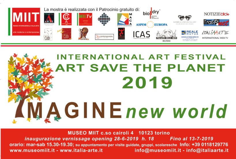 La mostra “IMAGINE new world 2019” verrà inaugurata al museo MIIT di Torino alle ore 18:00 di venerdì 28 Giugno e resterà aperta al pubblico fino al 13 Luglio in orario di museo. La rassegna intende presentare una selezione di opere e di artisti che, con il loro messaggio, con il loro stile, con i soggetti rappresentati, oppure attraverso la ricerca e la sperimentazione offrono nuove interpretazioni del mondo e dell’arte, della realtà, della società, della vita sul pianeta e del rapporto Uomo-Mondo (v. Comunicato stampa).