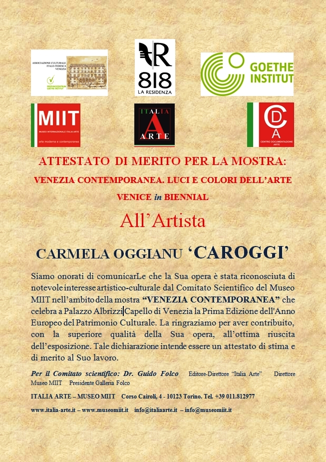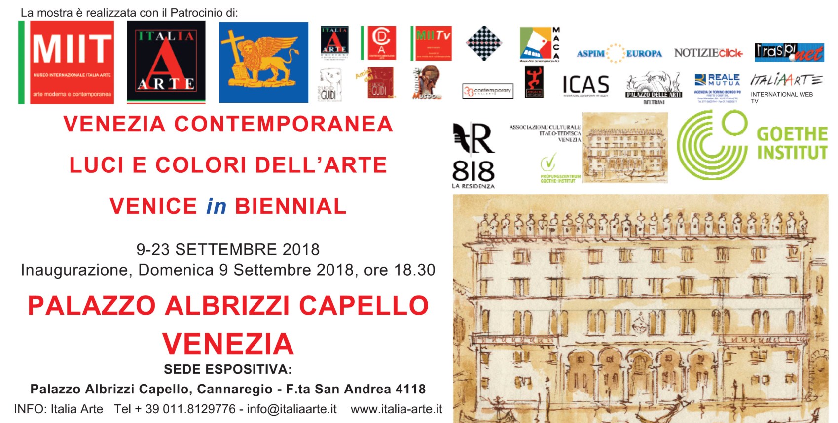 In occasione dei grandi eventi ospitati a Venezia (la Biennale Internazionale di Architettura, la Mostra Internazionale del Cinema, la Venice Glass Week e il Festival della Musica), Italia Arte e museo MIIT curano e organizzano la mostra “Venezia Contemporanea: luci e colori dell’arte” che si terrà a Palazzo Albrizzi Capello dal 9 al 23 Settembre 2018, con il Patrocinio dell’Associazione Culturale italo-tedesca e del Goethe Institut di Venezia (v. Comunicato stampa).