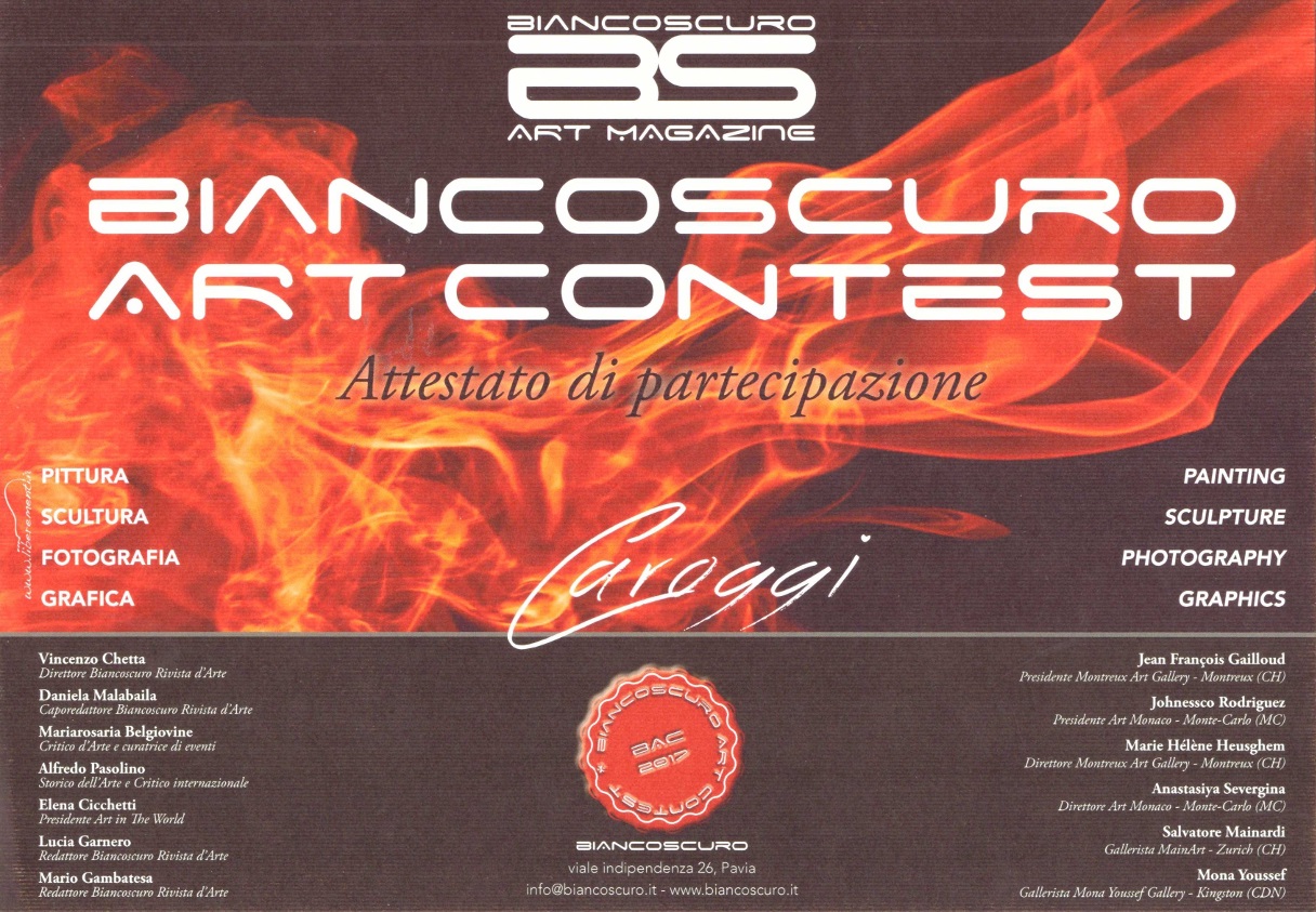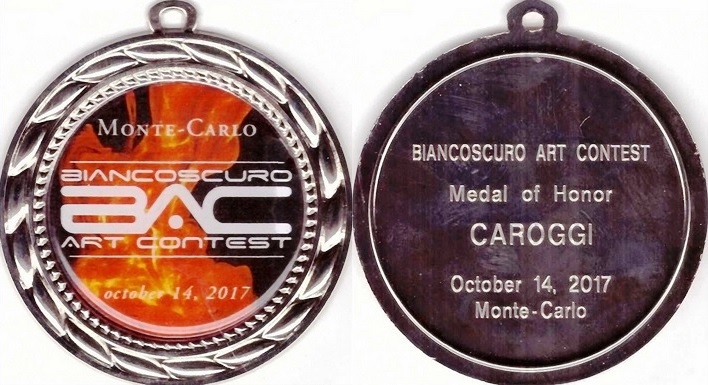 Caroggi partecipa alla mostra con 2 opere: Il Cristo (acrilico su tela gallery 70 x 50h cm, 2017) e Bambina in maschera (acrilico su tela 50 x 70h cm, 1988).