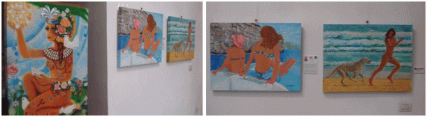 Caroggi partecipa alla mostra con le seguenti due opere del 2017: (1) Bambino sull’altalena, acrilico su tela 60 x 80h cm e (2) Sposa Vaisnava (Corteo della Sposa Vaisnava che sale al Tempio), acrilico su tela gallery 80 x 100h cm.